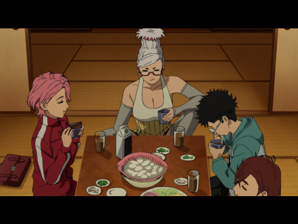 Dan Da Dan gönnt uns kaum eine Verschnaufpause. Zum Einstieg in Volume 2 gibt es lediglich eine kurze RomCom-Phase, die eine Annäherung zwischen Okarun und Momo andeutet, doch dann gibt die Inszenierung direkt wieder Vollgas. Neue Charaktere und Gegenspieler werden eingeführt, bekannte Figuren bekommen charakterliche Erweiterungen (oder auch veränderte körperliche Formen) spendiert, und ganz Allgemein herrscht wieder herrlich skurriles Chaos. Kein Wunder, dient als Ausgangspunkt immerhin die Suche nach den eigenen Kronjuwelen. Aber wundern sollte man sich bei Dan Da Dan sowieso über überhaupt gar nichts, sondern einfach nur die turbulente, hochfrequentierte Reizüberflutung genießen, die einem hier um die Ohren gehauen wird. Ein fliegender Wechsel zwischen rasanter Action mit einer Prise Horror, jeder Menge skurrilen Ideen und Figuren, einer Spur jugendlicher Romantik sowie teils slapstickhaftem, teils wunderbar ausformuliertem, teils derb-frivolem Humor, Dan Da Dan bombardiert den Zuschauer ohne Unterlass mit allem, was den Machern gerade in den Sinn kommt. Und das alles wird erneut garniert mit zahlreichen Querverweisen und Hommagen an Anime-, Film- und Popkultur, was den Einfallsreichtum und die Liebe zur eigenen Durchgeknalltheit einfach nur noch zusätzlich unterstreicht. Bitte Dan Da Dan, mach einfach genau so weiter!