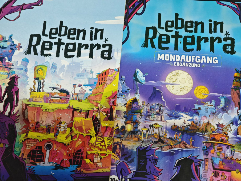 23.12.2025 von 2-PL4Y3R5Leben in Reterra ist Postapokalypse mal anders. Statt Dunkelheit, Krankheit, Dürre und Gewalt begegnet man einer farbenfrohen Welt, in der die überlebenden aus den Überbleibseln der Zivilisation Gebäude errichten. Nehmt euch die Zeit und schaut euch das Artwork auf den Gebäude-Plättchen genauer an. Da wäre eine Gärtnerei, offensichtlich aus einem alten U-Boot gefertigt, oder eine Farm, auf der Kühe über zwei Stockwerke verteilt sind. Ein großes Kompliment an den Illustrator. Ich kann mich an dem Artwork einfach nicht satt sehen. Aber ein Spiel ist mehr als die verwendete Kunst. Für diese Rezension haben wir uns Leben in Reterra mit der Mondaufgang Erweiterung nicht nur im Detail angeschaut, sondern auch ausgiebig getestet. Was wir von der Spielerfahrung halten, das verraten wir euch hier.