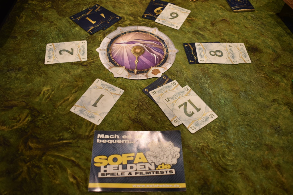 Das Ziel einer Runde ist es, alle vier Uhren eines Umschlages/Kapitels zu lösen. Das macht Ihr, indem Ihr Eure Karten entsprechend der Regeln verdeckt um die Uhr anlegt. So liegen am Ende zwölf Karten um die Uhr herum und diese müssen von Beginn bis Ende aufsteigende Summen ergeben. Gelingt es Euch die Uhr so zu lösen, spielt Ihr die nächste. Gelingt es Euch nicht, könnt Ihr die Uhr mit einem (weiteren) Bonusplättchen erneut spielen. Eine Runde ist gewonnen, wenn Ihr einen Umschlag vollständig gelöst habt.