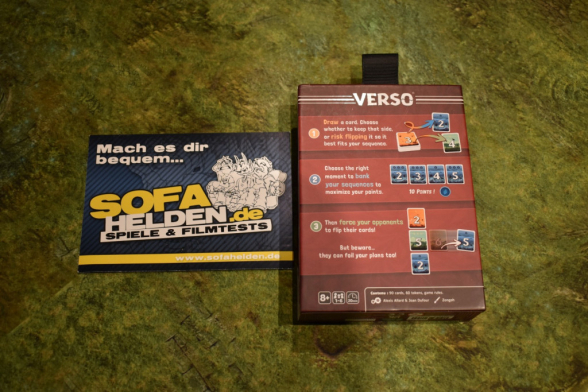 17.03.2026 von Born2bewildVerso ist ein Kartenspiel, dass unter die Kategorie: Flog bis zur SPIEL unter dem Radar. Denn auf der Messe spielten wir eine Maxi-Version des Spiels bei Gigamic. Dann dachten wir erst einmal: richtig cooles Spielmaterial und waren dann etwas irritiert, als wir die normale, kleinere Version mit „normalen“ Karten und nicht die aus Schaumstoff in der Hand hielten. Doch das sollte uns nicht davon abhalten, einen genaueren Blick auf die englische Version des Spiels zu werfen. Ob es uns davon abgehalten hat, dem Spiel eine gute Wertung zu geben, erfahrt Ihr in unserem Review…