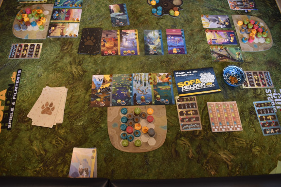 Etwas interessanter wird es mit den Naturgeistkarten, die dem Ganzen noch etwas Komplexität hinzufügen. Hierfür kann man alternativ aber auch die Rückseite der Spielertableaus verwenden. Außerdem gibt es auch einen Solomodus.