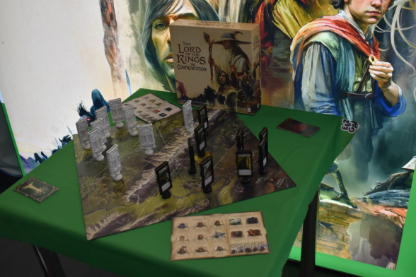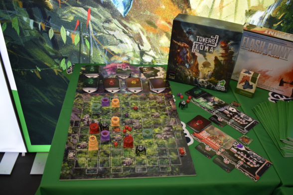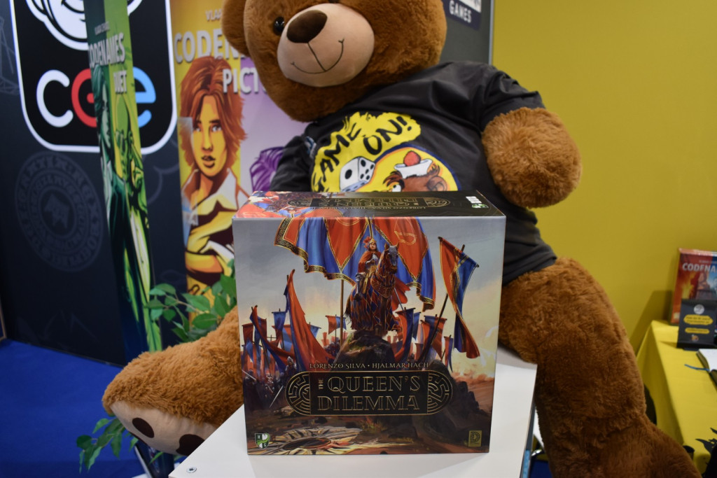 Nach einem kurzen Messespaziergang widmeten wir uns dann Heidelbär und CGE. Neben der bekannten Neuheiten wie Codenames - Back to Hogwarts, gab es auch den „Nachfolger“ von The Kings Dilemma, nämlich The Queens Dilemma zu bewundern. Auch Elznir hatte einiges zum Zeigen. Besonders ins Auge stach uns dabei das Gemeinschaftsprojekt mit HYBR: Towers of Yoma, ein App gestütztes Tower-Defense*Game. Für Elznir gab es mit dem ersten selbstentwickelten Spiel Banano eine Premiere.
