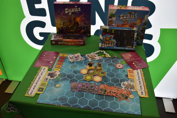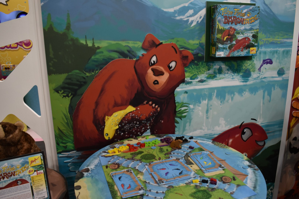 Im vorletzten Termin präsentierte man uns am Stand von Cranio noch das vielversprechende Geschicklichkeitsspiel Orcs Up!. Ebenfalls interessant war hier das an Harmonies erinnernde Planet Bee, das den bekannten Mechanismus noch etwas komplexer präsentieren möchte. Neu war für uns der Verlag Red Glove, der vor allem mit Kinder- und Familienspielen auf der Suche nach deutschen Distributoren war. Hier stach uns Jurassic Valley ins Auge, das durch seine Fossilien-Modelle aus Holz bestach. Ebenfalls interessant dürfte aber der Dungeon Cube sein, der vom Grundprinzip her an einen Rubics Cube erinnert, bei dem man aber nicht die Farben sortieren, sondern Aufgaben erledigen und sich durch eine Geschichte spielen muss.