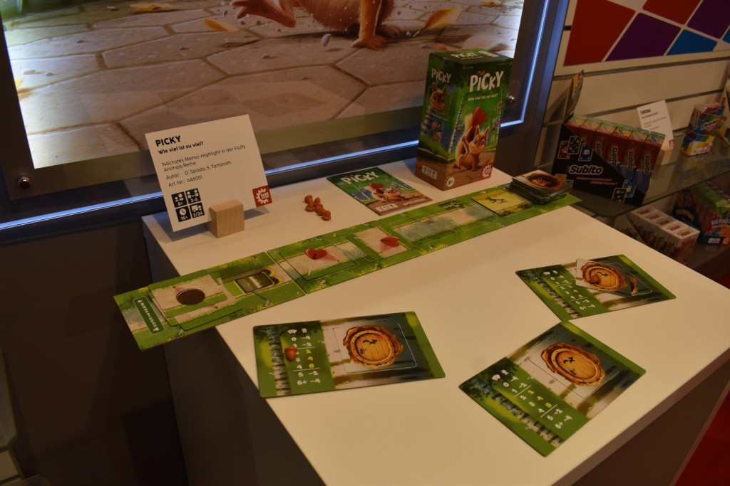 Den Abschluss, was Neuheiten angeht, machte Pegasus. Bekannt für seinen großen und sehr umfangreichen Stand, hatten wir hier schon mehr Zeit eingeplant, die aber trotzdem nicht für alles ausreichte. Von der Präsentation der Kinder-Geschicklichkeitsspiele wie Torten Träume, über kooperative Karten Spiele wie Last Minute, bis hin zu Kennerspielen mit sehr interessantem Spielmaterial wie Kalypso, war alles dabei.
