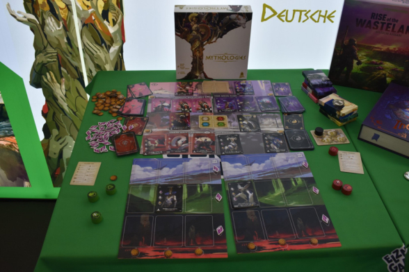 Als nächstes stand Arcane Wonders auf dem Programm. Hier hatten wir schon Leylines angespielt, das gerade in der Spieleschmiede auf Deutsch gefounded wird. Außerdem entdeckten wir das kooperative Spiel If Then, bei dem wir gemeinsam versuchen einen Code zu knacken. Während man sehr einfach bei Level 0 einsteigt, ist Level 3 nahezu nicht schaffbar. Dafür gibt es aber zu jedem Level sehr viele Karten, die man zum Üben verwenden kann. Auch Foundations of Rome war ein echter Eye-Catcher.