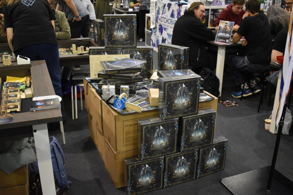 Was uns im Vorfeld aber schon aufgefallen ist: man konnte den einen oder anderen neuen Verlag entdecken. Hierzu gehörte zum Beispiel auch der Rollen- und Brettspielverlag Squink, den wir schon auf der SPIEL 2025 unter die Lupe genommen hatten. Kurz vorher hatten wir gerade erst NussFieber getestet und wollten uns nach den neusten Infos zu Fateforge und dem Crowdfounding-Projekt Draconis erkundigen. Letzteres läuft übrigens nicht mehr lange und wir haben selbst investiert. Denn es wurde uns leider zu gut als „anfängertaugliches Rollenspiel für die ganze Familie“ gepitcht. Anschließend ließen wir uns auf der großen Spielfläche nieder, um ein paar Spiele zu spielen. Hierzu gehörten das etwas ältere Karak von Kosmos, Kavango von Schmidt Spiele und das lange unterschätzte Neuland von Game Factory. Doch wie so oft, verging die Zeit wieder viel zu schnell und es war plötzlich 18:00. Noch eine Stunde bis zu unserem Event…