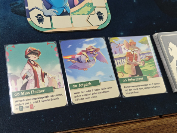 Komplexität/Regeln: So ein winziges Regelheftchen haben wir noch nie gesehen. In zwei Minuten hat man die drei relevanten Seiten durchgelesen. Die Komplexität erhöht sich durch die Erweiterung nicht wirklich. Zu der Division M Karte muss man nur wissen, dass man mit der ersten Karte seine Spielfigur auf sein Startfeld stellen darf und mit jeder weiteren Karte 1 bzw. 2 Schritte vor oder zurücklaufen kann. Die neuen Schwarzmarktkarten haben wie auch die des Grundspiels einen Kartentext, der die Fähigkeiten beschreibt, ohne dass es extra Regeln benötigen würde.
