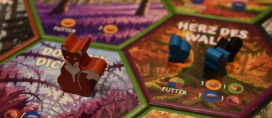 Da wären wir also schon bei der zweiten Aktion „Anspruch erheben“. Das funktioniert prinzipiell nur, wenn eine Figur außerhalb des eigenen Territoriums eingesetzt wurde. Es wird dann überprüft, ob man die Mehrheit an Macht in dem Gebiet hat. Dazu werden die Ratten angrenzender Gullys für jeden Clan gezählt. Jeder Handlanger auf dem Gebiet zählt zusätzlich eine Macht, jede Bossin gibt zusätzlich zwei Macht für den zugehörigen Clan. Hat man die Mehrheit, darf man die Grenzen des eigenen Territoriums so verschieben, dass von nun an das neue Gebiet dazugehört. Gegnerische Grenzen werden entsprechend verdrängt. Befindet sich in dem Gebiet ein gegnerisches Hinterzimmer, wird dieses zerstört. Man erhält das Plättchen als Siegpunkt. Hat man keine Mehrheit, passiert nichts.