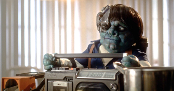 Wer hätte das gedacht? Angesiedelt in den 80er Jahren ist Frankie Freako weit weniger schräg und abgefahren, als man es vielleicht von Steven Kostanski erwarten würde. Statt überdrehter Splatter-Orgie oder ausuferndem Chaos präsentiert sich Frankie Freako vielmehr als beinahe schon handzahme und familientaugliche Retro-Komödie, die viel mehr Wert auf unterhaltsamen, leichtgängigen Spaß und unzählige Hommagen an die Pop- und Filmkultur der 80er legt, als darauf, möglichst bizarr und durchgeknallt zu sein. Obwohl Kostanski natürlich nicht er selbst wäre, wenn er nicht dennoch eine Menge wirklich großartiger Ideen sowie den ein oder anderen kleinen Gewaltmoment abliefern würde. Passenderweise lässt Kostanski hier jeglichen Stunteffekt sowie das wunderbar kuriose Puppendesign extrem billig und dadurch gleichzeitig äußerst humorvoll aussehen, während das gesamte Setting herrlichen Retro-Charme versprüht - sowie absoluten Indie-Charme, denn der mit gerade einmal etwa 50.000 Kanadischen Dollar realisierte Frankie Freako wirkt zwar durch die Bank trashig, holt aber dennoch das Möglichste aus seiner Inszenierung heraus. Der wilde Mix aus Gremlins, Critters, Ghoulies und anderen Monster-Filmen dieser Zeit funktioniert jedenfalls hervorragend, und macht Frankie Freako zu einer durchwegs unterhaltsamen Kuriosität, die man einfach mögen muss, auch wenn man die budget-, darsteller- und effektbedingten Schwächen eigentlich nicht übersehen kann. Denn gerade die machen das Ganze eigentlich überhaupt erst so liebenswert...