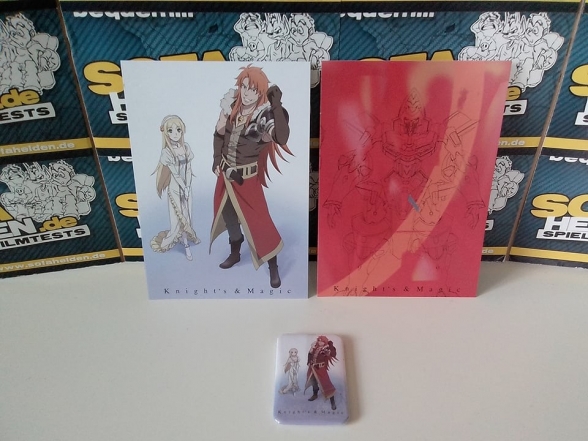 Das Cover der Collector´s Edition gewährt dieses Mal einen Blick auf Prinzessin Eleonora von Kuschperka sowie Prinz Ambrosius. Wie gehabt zieht sich dieses Motiv durch die gesamte Edition und zeigt sich dementsprechend nicht nur auf Amaray und Schuber, sondern auch auf dem Kühlschrankmagnet und einer der beiliegenden Postkarten. Die zweite Artcard zeigt wie gewohnt die Konzeptzeichnung eines "Silhouette Knight". Im 8-seitigen Booklet befindet sich ein ausführlicher Episodenguide, ebenso wie zusätzliche Infos zu den Luftschiffen aus Zaloudek und Ernestis "Silhouette Knight" Ikaruga.