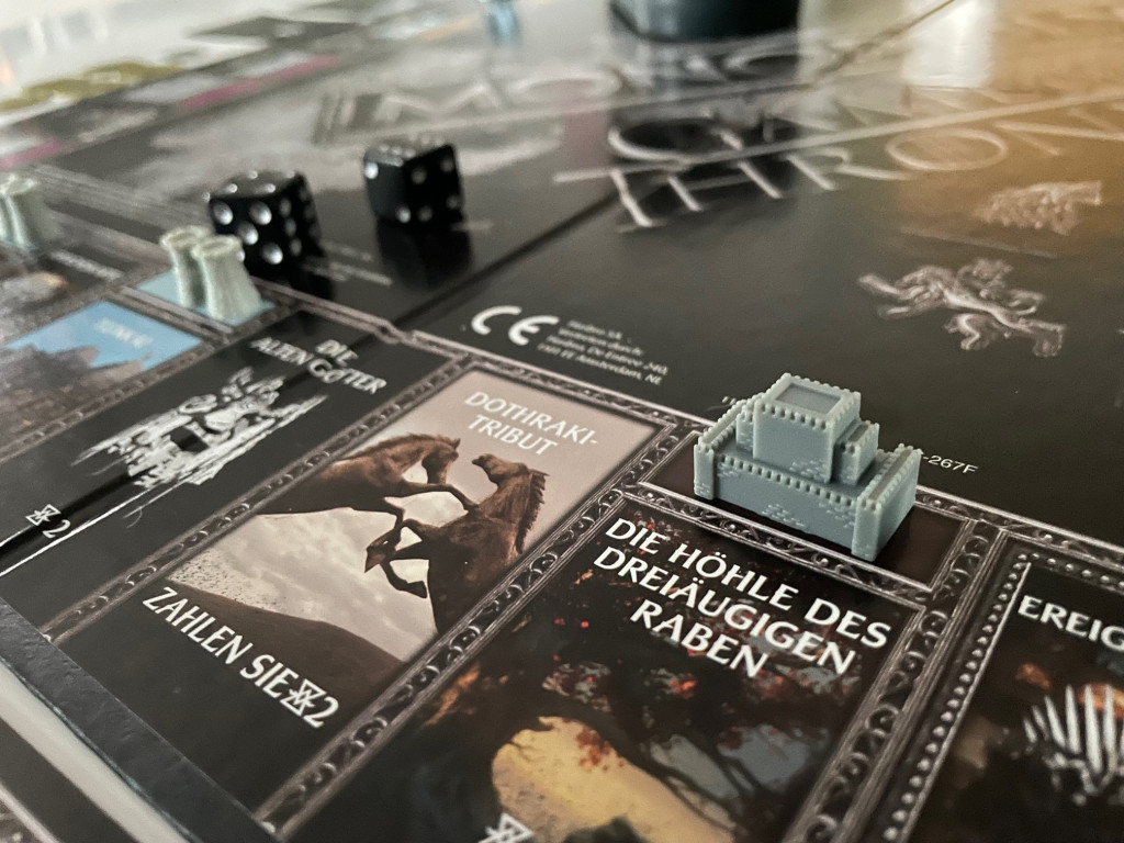 Auch hier ist alles beim alten. Reihum ziehen die bis zu sechs Spieler ihre Spielfiguren um den Spielplan und kaufen Grundstücke, auf denen sie dann Miete verlangen. Mittendrin darf verhandelt werden. Pleite gehen sollte man nicht, da der Spieler sonst aus dem Spiel ausscheidet. Wer zum Schluss übrig bleibt und quasi alle anderen Mitstreiter ausgestochen hat, gewinnt den Platz auf dem Eisernen Thron.