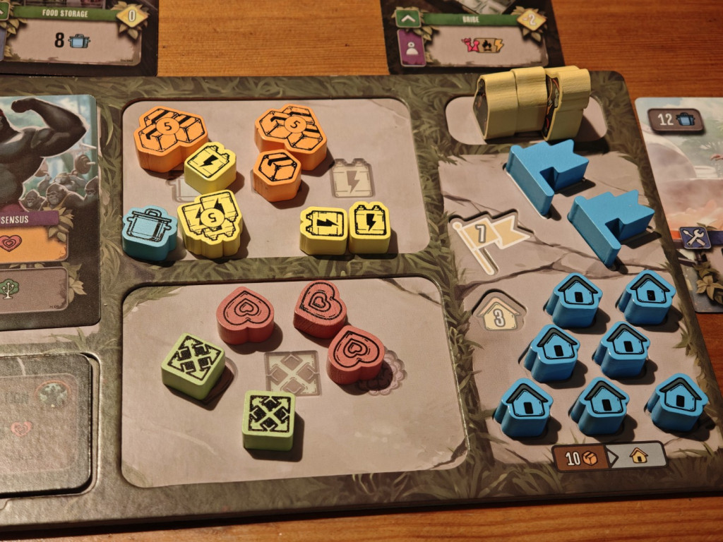 Wie eingangs erwähnt gibt es große und kleine Arbeiter. Die großen Arbeiter sind die Stammes-Anführer. Werden diese auf ein Feld platziert, blockieren sie das Feld für andere Arbeiter. Die kleinen Arbeiter dagegen sind die Erkunder und blockieren das Feld nicht. Es können beliebig viele Erkunder dasselbe Aktionsfeld besuchen. Aber jeder Spieler darf nie mehr als einen Arbeiter auf einem Aktionsfeld stehen haben.
