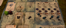 Ganz unten auf dem Nebenplan hat jeder Spieler drei Erfolgssterne platziert. Diese sind für die Endwertung besonders wichtig. Sobald ein Mitspieler einen Einkommens-Zug ausführt, wird einer seiner Erfolgssterne von diesem Bereich auf die Meilensteinleiste links auf dem Nebenplan platziert, abhängig davon wieviel Erfolgsplättchen der Spieler zu diesem Zeitpunkt gesammelt hat. Im Spielverlauf sammelt man nämlich nicht nur direkt Siegpunkte, sondern auch Erfolgsplättchen. Möchte, oder kann ein Spieler keine Aktionen mehr ausführen, weil keine Aktionsplättchen mehr zur Verfügung stehen, so führt er einen Einkommens-Zug durch. Dadurch bekommt er seine Aktionsplättchen zurück und darf einen Erfolgsstern auf die Meilensteinleiste setzen. Die Position der Erfolgssterne auf der Meilensteinleiste bestimmt, wofür es am Ende des Spiels Siegpunkte gibt und mit welchem Siegpunktemultiplikator diese verrechnet werden. Nach dem Einkommens-Zug werden alle Erfolgsplättchen abgeworfen, sodass man wieder mit null Erfolgen in die kommenden Spieler-Züge startet und sich für eine weitere Endwertung erneut mit Erfolgen hocharbeiten muss. Die Anzahl und Qualität der Endwertungen ist also abhängig davon wie häufig diese Einkommens-Züge ausgeführt werden und wieviele Erfolge man in der Zwischenzeit gesammelt hat.