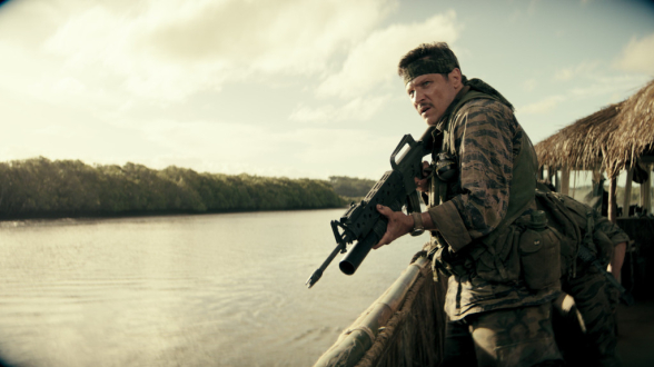 Natürlich. Die Handlung von Primitive War ist völlig absurd und schreit regelrecht nach einem klassischen C-Movie, das vor allem durch miese Effekte, dumme Dialoge, austauschbare Charaktere und eine uninspirierte Erzählung glänzt. Doch schon die ersten Minuten machen klar: Trotz des tatsächlich vergleichsweise geringen Budgets von gerade einmal 7 Millionen Dollar ist Primitive War nicht nur absolut hochwertig in Szene gesetzt, sondern wirklich darum bemüht, eine Geschichte zu erzählen - auch wenn eben diese dadurch selbstverständlich nicht weniger absurd wird. Für den immerhin inhaltlich trashigen Beigeschmack wird man jedoch angemessen mit Schau- und Unterhaltungswerten entschädigt, angefangen vom Vietnam-Kriegsfilm-typischen Rock-Soundtrack über Figuren, die durchaus sympathisch sind und sogar genreuntypisch mit ein wenig mehr Tiefe ausgestattet wurden, bis hin zu den knackigen Actionszenen, sei es in Form von klassischen Kriegsfilm-Momenten oder auch bluttriefenden Begegnungen mit Dinosauriern. Und Dinosaurier gibt es hier eine Menge, wobei diese nicht nur unerwartet gelungen - und wissenschaftlich auf dem aktuellsten Stand - anzusehen sind, sondern in ihrer Vielfalt und Variation sogar dem ein oder anderen Teil der Jurassic Park - Reihe die Show stehlen. Das alles ist im Gesamtbild so herrlich überzogen und legt dabei einen so (durchaus passenden) Ernst an den Tag, das es einfach nur unglaublich viel Spaß macht, und Primitive War damit zu einem absolut unterhaltsamen Streifen macht, der so manche Hochglanz Hollywood-Produktion alt aussehen lässt...