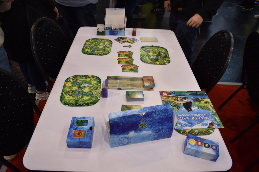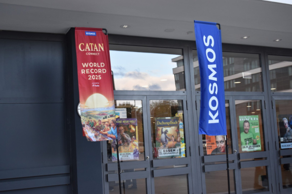 Bereits vorgewarnt durch diverse Messebesucher wollen wir natürlich am ersten Tag nicht zu spät kommen. Unsere überraschend leere U-Bahn bringt uns wieder zum Eingang Ost. Dieses Mal aber mit einem völlig anderen Bild. Der Eingang zur Messe ist um 9 bereits offen und die Spieler*innen versammeln sich bereits in Halle 8 (quasi die Eingangshalle), in sehnsüchtiger Vorfreude auf die Messe vor den verschlossenen Toren zu Halle 7. In dem Moment sehr dankbar über die Akkreditierung, suchen wir den Presseeingang. Hier herrscht ein wenig Verwirrung, wo dieser eigentlich ist oder ob man vielleicht doch beim Kosmos Shop ansteht? Am Ende geht alles gut und wir kommen in Halle 7. Der erste Eindruck: Ok, eine Messehalle mit vielen Spielen. Es sind zwar schon einige Austeller*innen und Pressevertreter*innen in den Hallen unterwegs, aber sonst ist es Menschenleer… Die Ruhe vor dem Sturm. Wir verschaffen uns einen ersten Einblick und starten den Messetag um 10:00 in Halle 6 mit einem ersten Spiel: Kilia, das uns erstmal nur wegen des besetzten Tisches von Serverton als „Notnagel“ ins Auge sticht. Aber siehe da: Ein sehr gutes Spiel.
