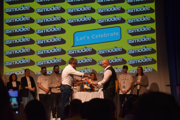 Dann beginnt die Pressekonferenz... und was soll ich sagen: Gänsehaut. Der Trailer, der im Livestream schon für die erste Vorfreude gesorgt hatte, wirkt in der Realität noch emotionaler. Dann gibt es wie gewohnt die Zahlen, Daten und Fakten zur Messe (von denen Euch André berichten wird) und die Verleihung des deutschen Spielepreises. Anschließend die Eröffnung von Halle 8 mit der Neuheitenschau. Diese ist - wie man sie vom Livestream kennt - sehr kompakt und informativ. An den meisten Ständen kann man sich die Spiele kurz erklären lassen. Auch hier trifft man viele bekannte Gesichter. Der Eindruck ist für uns überwältigend. Wir sind zwar strukturiert durch die Gänge gelaufen, aber wurden trotzdem von der Vielzahl an Neuheiten überschwemmt. Immer wieder wird man nach dem Favoriten oder Geheimtipp gefragt, doch es gibt so viele gute Neuheiten und Eindrücke, ein besonderes Highlight können wir noch nicht ausmachen. Der Tag endet für uns, wie er angefangen hat, voller Vorfreude auf den ersten offiziellen Messetag, aber sehr erschöpft vom vielen Stehen und Rumlaufen und etwas Überfahren von der Vielzahl an Eindrücken.