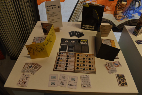 Den Abschluss der Messe machte für uns dann Game Factory. Hier gab es neben der Kollektion aus Minispielen wie beispielsweise Auf die Eier, noch einige familientaugliche Spiele zu entdecken. Da mir Spiele mit Memory-Komponente nicht so liegen, blieb bei mir vor allem das interessante Legespiel chroma und das Partyspiel Dito! hängen. chroma erinnert ein wenig an Domino. Man muss Farbkarten so auslegen, dass die angrenzenden Karten mit den passenden Farben auf dem Farbkreis übereinstimmen. Hinzu kommen dann noch einige Sonderkarten. Bei Dito! geht es darum, Begriffe zu finden und auf einem 3x3 Tableau einzutragen. Diese sollten nur mit einer und nicht mehr Personen übereinstimmen, um möglichst viele Punkte zu erhalten.