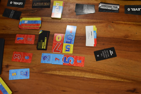 Als nächstes stand Arcane Wonders auf dem Programm. Hier hatten wir schon Leylines angespielt, das gerade in der Spieleschmiede auf Deutsch gefounded wird. Außerdem entdeckten wir das kooperative Spiel If Then, bei dem wir gemeinsam versuchen einen Code zu knacken. Während man sehr einfach bei Level 0 einsteigt, ist Level 3 nahezu nicht schaffbar. Dafür gibt es aber zu jedem Level sehr viele Karten, die man zum Üben verwenden kann. Auch Foundations of Rome war ein echter Eye-Catcher.