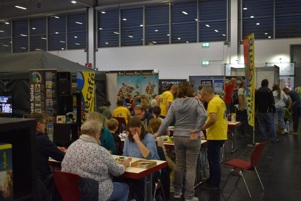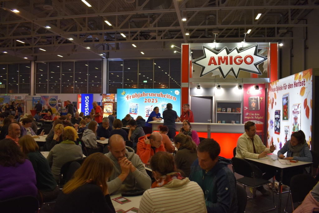 Dieses Jahr waren wir bewusst noch etwas früher als sonst auf der Messe. Nicht nur, weil wir es durch die Ferien mit den Kindern konnten, sondern auch, weil wir Großes vorhatten. Eine kleine Idee war etwas eskaliert und endete in mehr Planung als erwartet. Damit war unser erster Weg nach der Anmeldung erst einmal der Kosmos-Stand zur Abstimmung bezüglich unseres Catan Connect Events. Dieses Jahr in Halle 5, denn die Ausstellerhalle wurde mit der Halle der Spielfläche getauscht. Noch wirkte alles sehr ruhig. Die Aussteller*innen bereiteten Ihre Stände vor, die Erklärer*innen die Spielothek und auch an anderer Stelle bereitete man sich auf die Besuchenden vor.