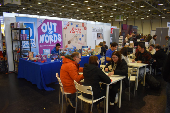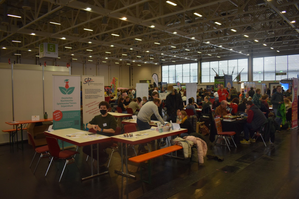 Was uns im Vorfeld aber schon aufgefallen ist: man konnte den einen oder anderen neuen Verlag entdecken. Hierzu gehörte zum Beispiel auch der Rollen- und Brettspielverlag Squink, den wir schon auf der SPIEL 2025 unter die Lupe genommen hatten. Kurz vorher hatten wir gerade erst NussFieber getestet und wollten uns nach den neusten Infos zu Fateforge und dem Crowdfounding-Projekt Draconis erkundigen. Letzteres läuft übrigens nicht mehr lange und wir haben selbst investiert. Denn es wurde uns leider zu gut als „anfängertaugliches Rollenspiel für die ganze Familie“ gepitcht. Anschließend ließen wir uns auf der großen Spielfläche nieder, um ein paar Spiele zu spielen. Hierzu gehörten das etwas ältere Karak von Kosmos, Kavango von Schmidt Spiele und das lange unterschätzte Neuland von Game Factory. Doch wie so oft, verging die Zeit wieder viel zu schnell und es war plötzlich 18:00. Noch eine Stunde bis zu unserem Event…